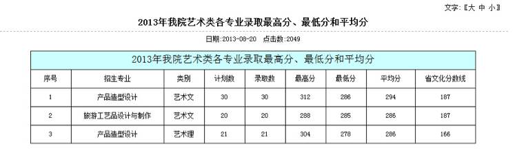 2013年我院外省各专业录取最高分、最低分和平均分