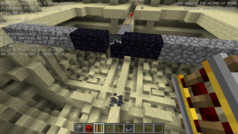 当然这玩意最蛋疼的地方就是必须全手动装填TNT矿车,原视频中炸弹人用了6个漏斗。我为了更丧病一点大幅增加了漏斗数量。
