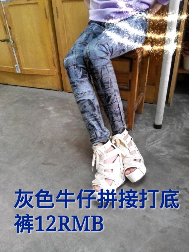 牛仔拼接打底裤,薄的,有蓝色和灰色,都是全新的带包装带标签