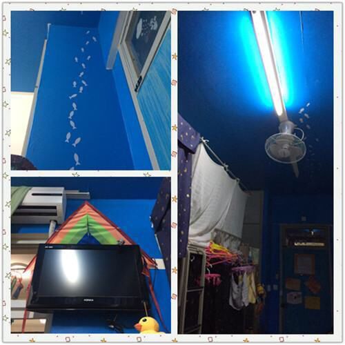 好棒,不过这个电风扇是几个意思?怎么跑天花板上去了?