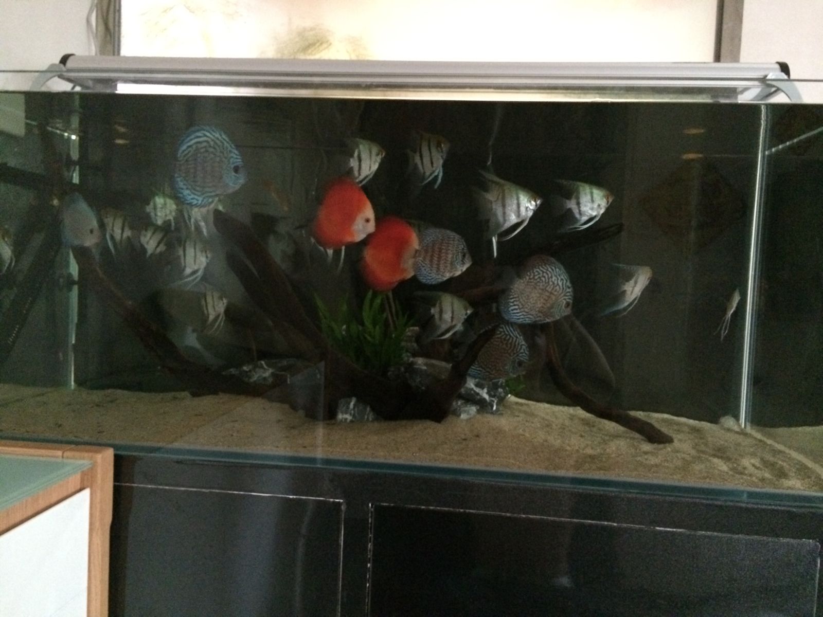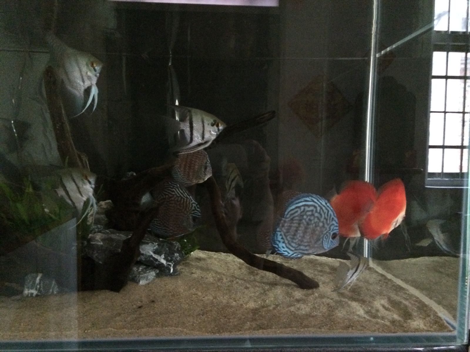 回复 雯宝WMU :我本来龙缸放了5条进去,状态和发色都比在南美缸的好,不过虎就全部都变得不明了,最后全部捞回南美缸。