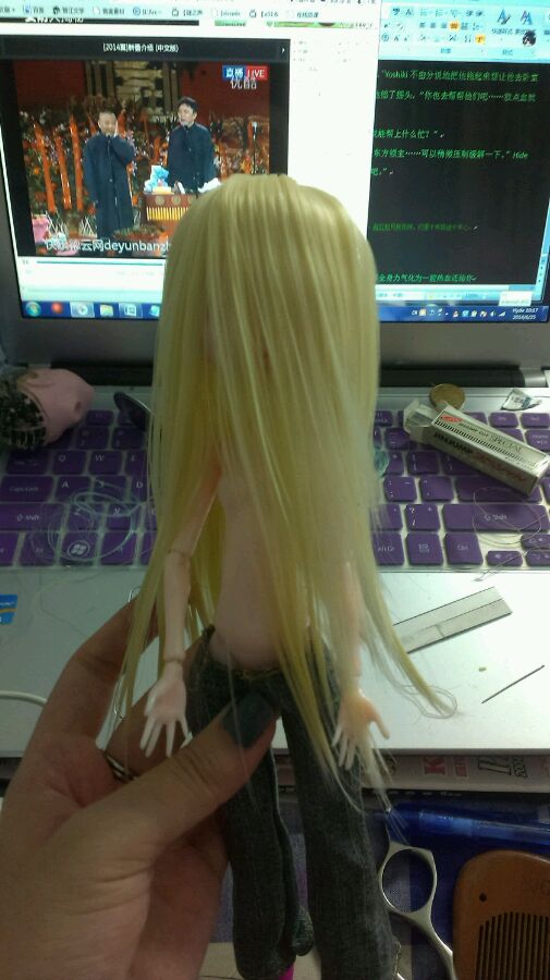 真的被自己蠢哭了。。。。。刚刚看着谜叔的实况结果忘记了其实我自己也算是在实况。。。ORZ忘记拍发套。。。弄张昨天呢啥 做hide时候拍的吧。。。我继续去缝头发w