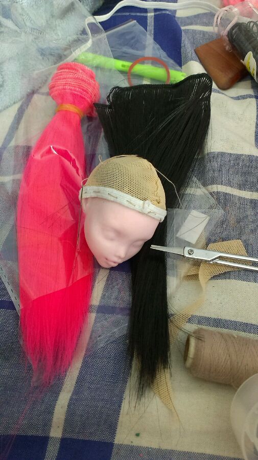 那么从假发开始w这次的头是血妞w发网和松紧带缝发套然后就开始缝发排。。。待我去作手工ORZ