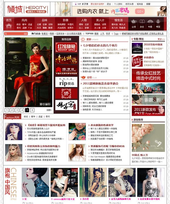 《倾城网》,在内容密集的门户网站中,线条既是内容分隔的手段,又是烘托中国风格的修饰。红色与两侧对称的花纹,更加突出了中式美。