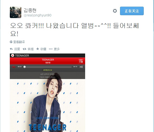 Younha:郑俊英teenager发行~~辛苦啦俊英!!
