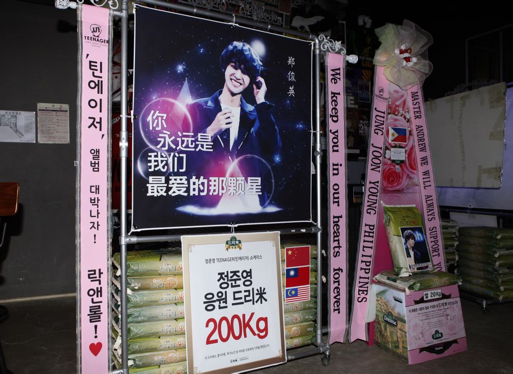 用大米花环代替普通的花环应援,既可以应援偶像,又可以把大米以偶像的名义捐献给慈善机构.