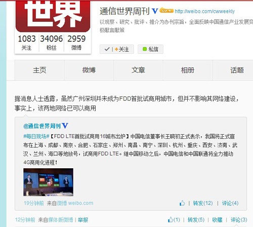 LTE-FDD试验网牌照6点发放 试商用16城市公布