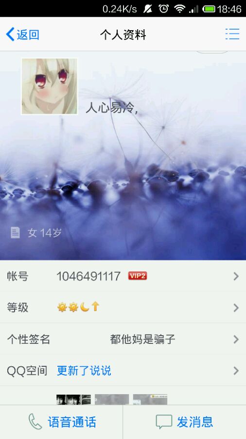 这个妹纸换头像换签名比我拉屎还快我真想呵呵她,有空换头像换签名没空理我