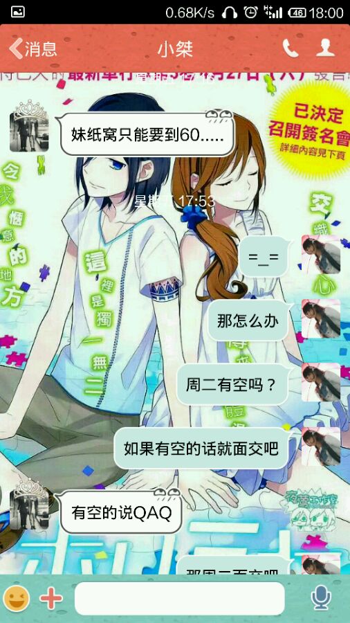 介个妹纸跟我说,星期五给我转定金,我就等着,结果妹纸我等到你今天你都没有给我转啊呵呵呵呵呵