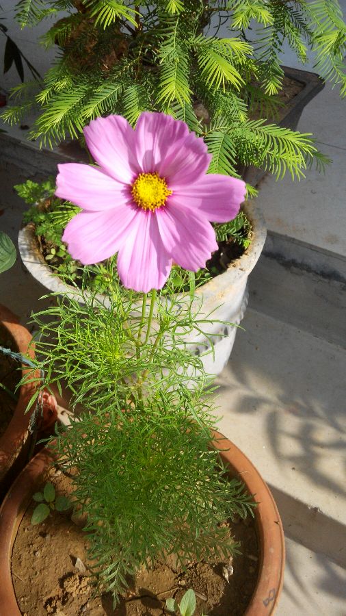 格桑花要大片种植才好看,不过你的红豆杉养的不错