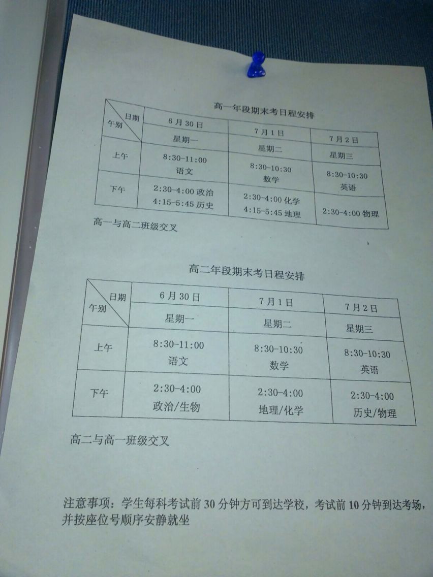 考试安排表奉上