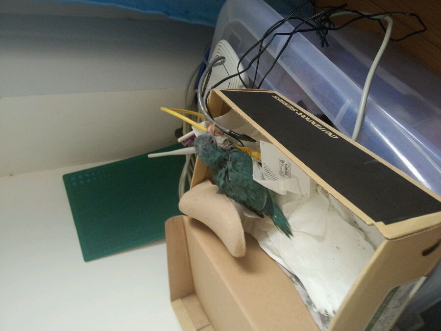 家里没有保温箱,把路由器塞进它的小箱子了。它在里面玩儿了一会儿就睡了。今天摸摸的时候这家伙会伸着脖子找舒服的地方了
