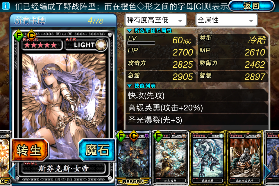 以上所有卡片可刀,此外还有一个53级的混乱铁女和一个金混乱的虎车