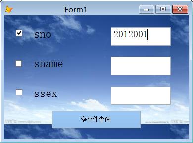 WHERE s.sno==thisform.text1.value and s.sname==thisform.text2.value and s.ssex==thisform.text3.value