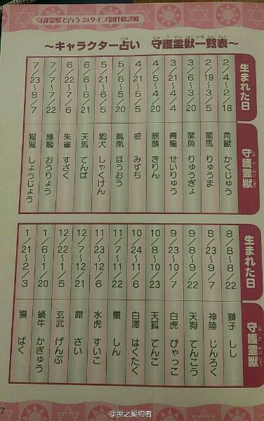 生日对象24种守护兽!!我不要猩猩