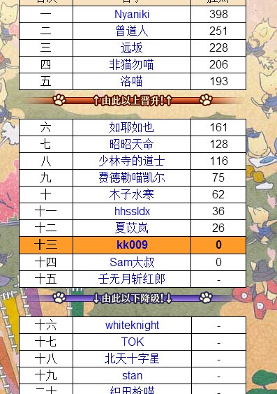 我是跟你一组的远坂,现在已经被这组的壕踢到第11名了。