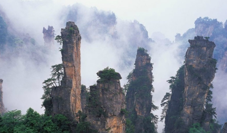 张家界,位于湖南西北部,属武陵山脉,是中国第一个国家森林公园。七十年代末,著名画家吴冠中与张家界邂逅,这场偶遇不亚于金风玉露的相逢,自那以后,张家界这颗“养在深闺人未识——失落的风景明珠”猛然闯入了世人心中。境内,集奇、雄、幽、野、秀于一体,汇峰、谷、壑、林、水为一色。“寂寞深山万古幽,天工造化艺人羞”。大放异彩的奇异仙境啊,世上有几个能工巧匠可以与之媲美呢?