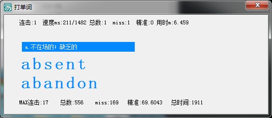 无聊,给喜欢打字的人做的.有声音,有统计哦.可以在vocabulary.txt里自己添加要打的单词.