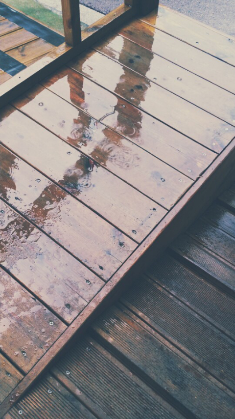 비가 와서 바지에 물이 튄다