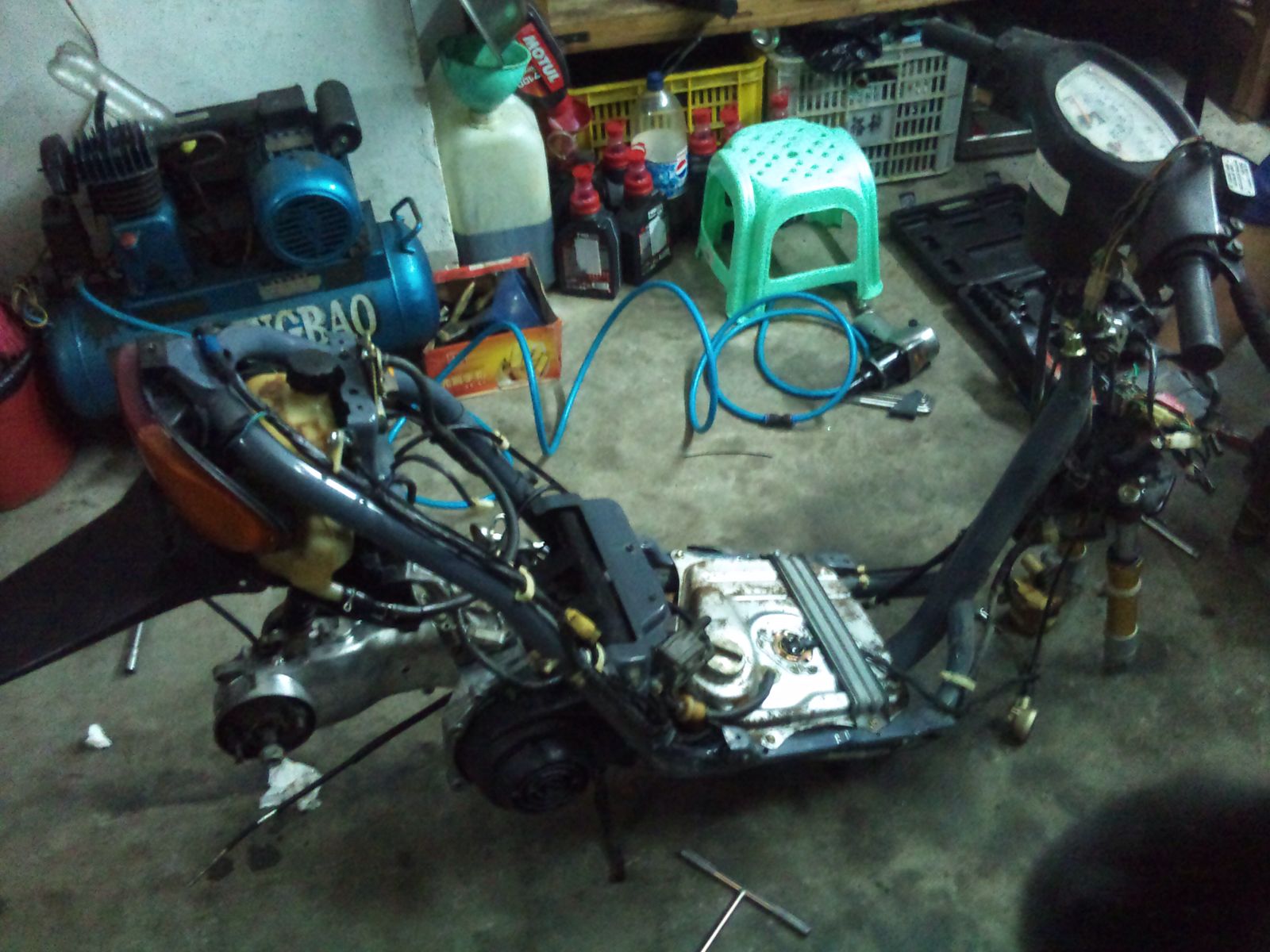 第一辆两冲是jog2 当时是代步的五羊本田被偷了,所以想买辆便宜点的,再丢了也没那么痛,于是有了它,那时候没有认识玩两冲的朋友,车子也木有改,省油,然后一瓶机油可以开一年,在手上两年,拉缸一次,自己买了套国产板,原板给藏了起来