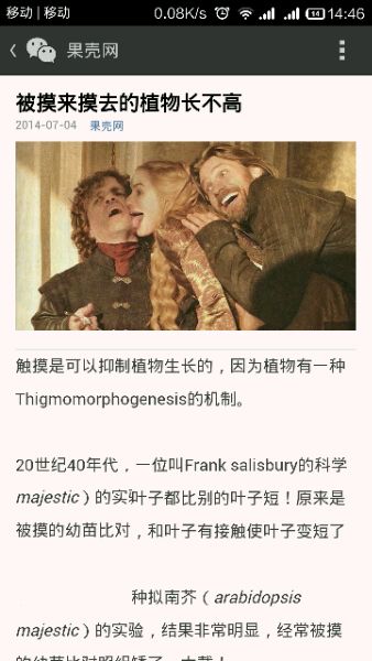 20世纪40年代,一位叫Frank salisbury的科学家发现自己量的叶子都比别的叶子短!原来是因为测量的时候,和叶子有接触使叶子变短了后来又有一个一种拟南芥(arabidopsis majestic)的实验,结果非常明显,经常被摸的幼苗比对照组矮了一大截!