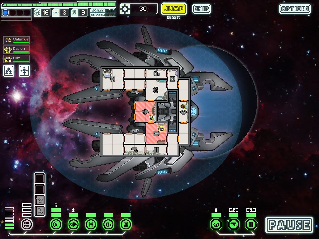 3. 登舰主力自然是初始这两个伯劳船员,特技是抽干所在舱室的氧气,肉搏极其有效;加上己方初始就有克隆仓,所以即便对面是无人无氧船,也可以大胆登船;