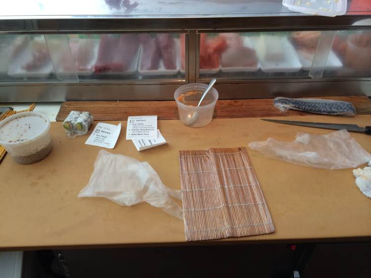 第一天到寿司店里面工作 站了一天好累 第一次的成果