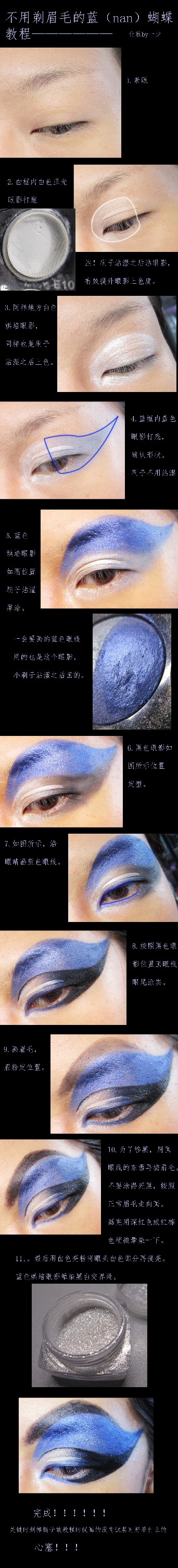 【教程】不用剃眉毛的蓝(nan)蝴蝶,眼妆教程
