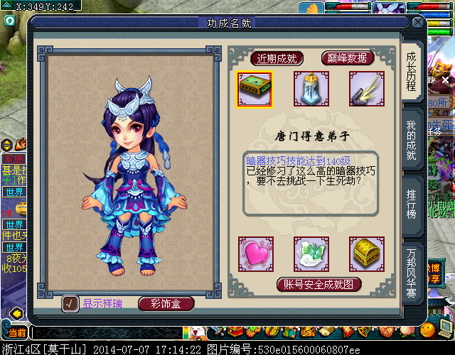 14年1月16日创号。到现在快要半年了,暗器都还没有满,更别说强身了。
