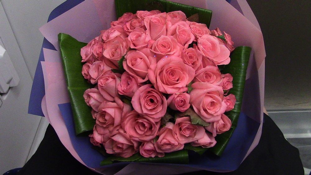 我总觉得在机场拿着一束鲜花走的画面很好啊!(我思想是不是很俗气啊?)