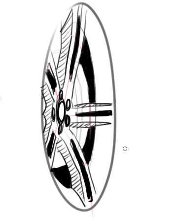 回复 山姆费学 :先用文字表示一下,这样的轮毂其实很画,只要把圆柱或者是说轮毂的凹凸关系表现就好,螺栓定位一切OK了/。