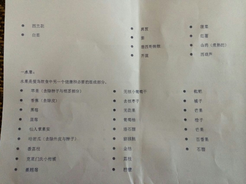 水果喂食鸟儿应当注意放置时间一般不超过2个小时,不管吃与不吃都应该拿走,因为夏天水果超过一定时间容易滋生细菌霉变。鸟笼一般放置三个食具,一个颗粒饲料长期放置任意食用,第二个放置混合饲料,每天的量尽量少放,鸟吃完会去吃颗粒。第三个就是水果,每次形状可以不同,鸟对什么品种水果兴趣不大感兴趣的是食物形状,不同形状会提高鸟儿进食兴趣。另外一个就是水具,冷开水,矿泉水等。