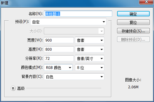 1、按键盘“Ctrl+N”新建文件,宽度为“900”,高度为“800”