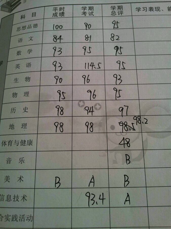 我只觉得我地理好棒其他都烂透了√毕竟英语我们班最高分118