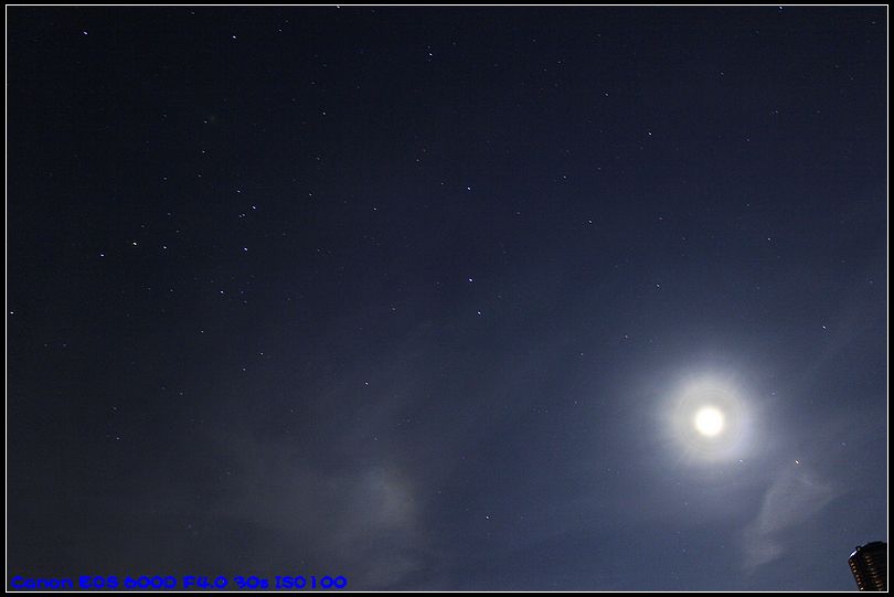 回复 不知道呀177 :18-55头最大光圈是F3.5。没有快门线就不能用B门,手按快门键,相机会抖动。可以用延时自拍,但这样最长只有30秒快门,调高感光度,也可以拍星空了,能够保持相机不动的话,连续拍几十张,后期合成就是星轨了。