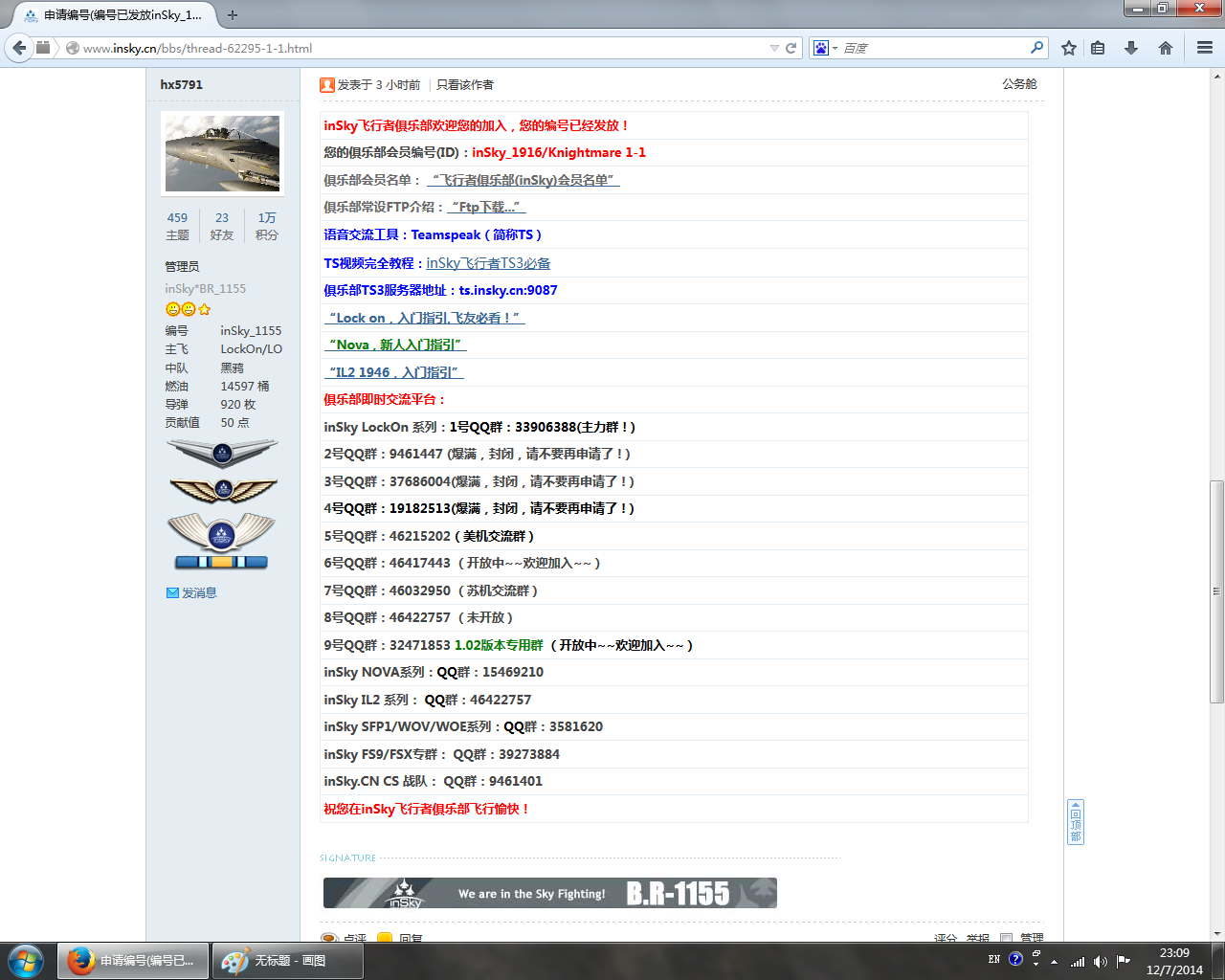 【求贺电】LZ成功取得inSky论坛编号