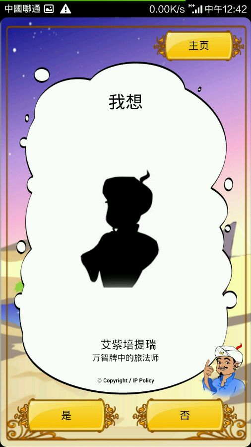 跟你说下,这款软件其实是唬人的。他开始的的时候涉及范围很小,而且很不精准。然后靠着玩家的步骤。来跟玩家说他猜不出来。然后让玩家给他正确答案。久而久之他的题库就全了。我一年半前就玩过这款。里面里面的多密雷德还是我加的呢。你可以问问一个特别偏冷的人物。某个游戏或者电影里的小小角色再试试。