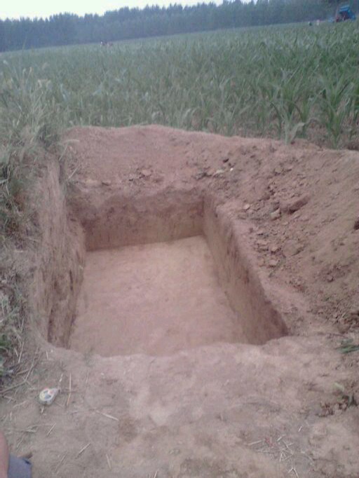 先挖一个长宽比棺材稍大点的坑 然后在一面开窑 就是最终放棺材的地方