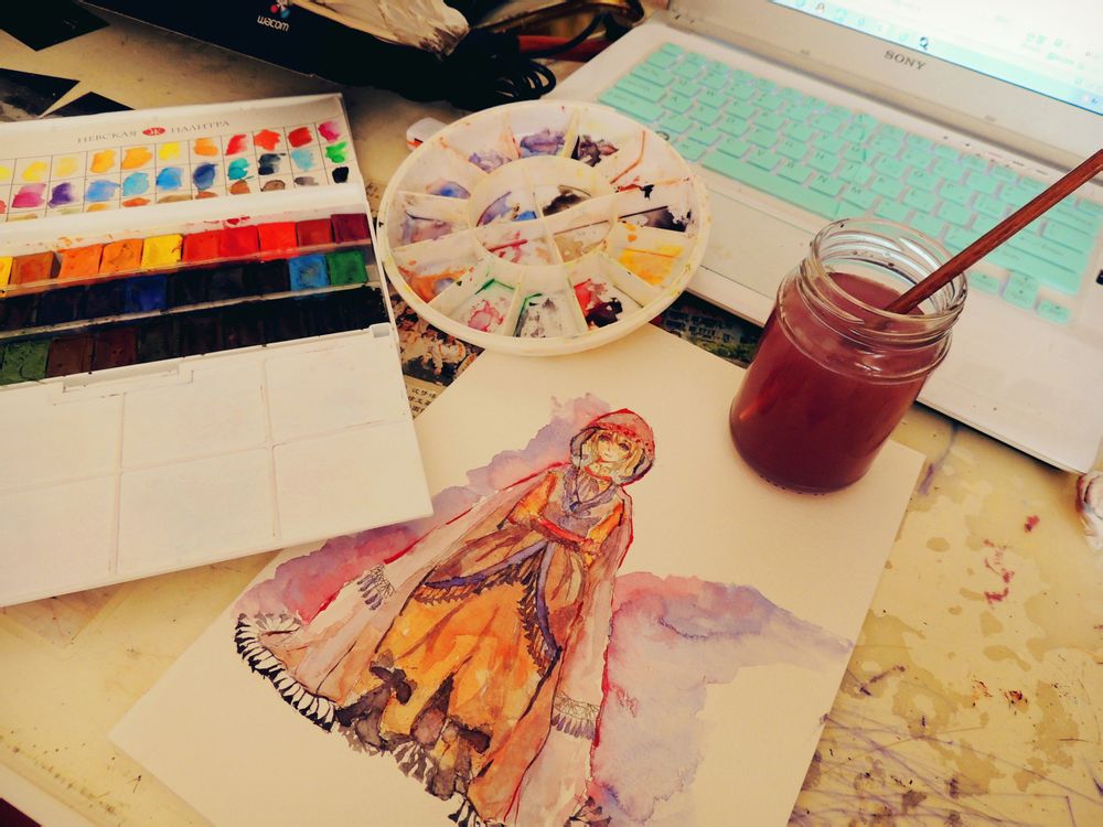 有在尝试着画水彩~~QAQ刚刚开始学着画水彩··还比较脏··