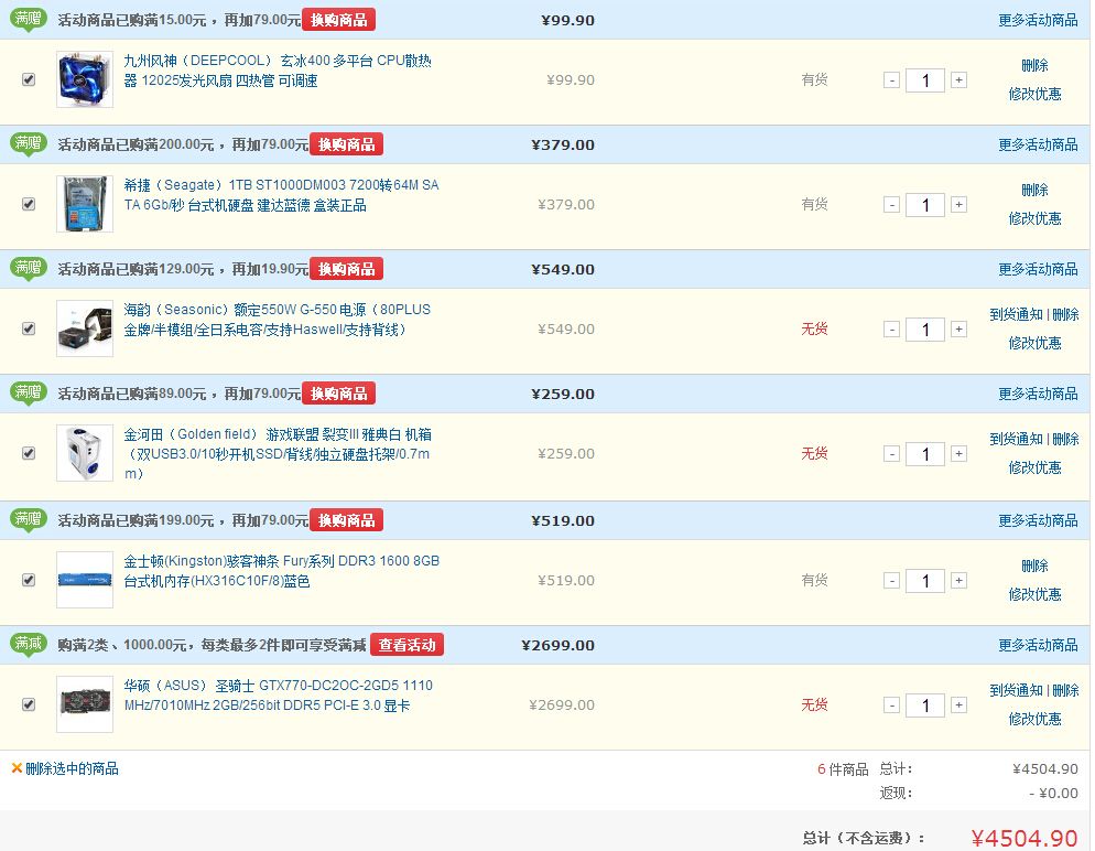 这是我经过多方对比考察得出的单子,不过选阿苏斯770的原因是我有阿苏斯信仰和N卡信仰。其实也考虑过上280X毒药的,最后还是信仰的力量选了770