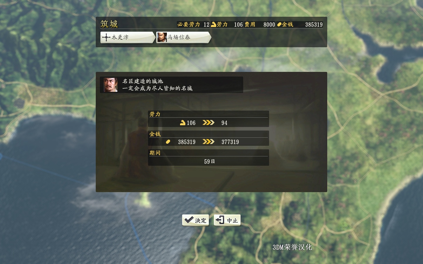第一张是河源纲家(政治82,无筑城名手)所需时间,第二张是马场信房(政治80,无筑城名手)所需时间
