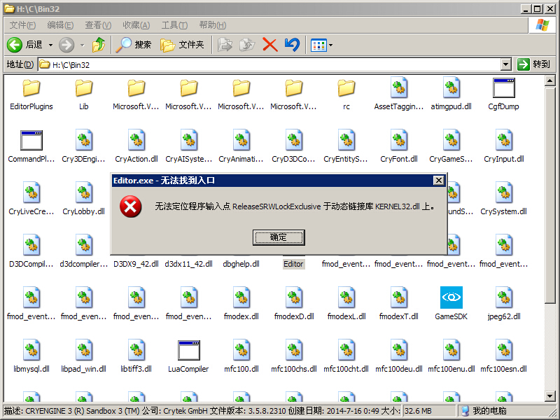 这个是最新的CRYENGINE_Build_PC_v3_5_8_2310_freesdk,提示缺的那个DLL根本不缺,系统里有