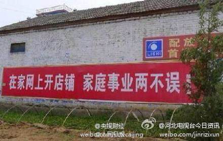 电商大佬纷纷进村,所到之处,刷墙留痕:“要销路,找百度”、“生活想要好,赶紧上淘宝”、“老乡见老乡,购物去当当”、“发家致富靠劳动,勤俭持家靠京东”…