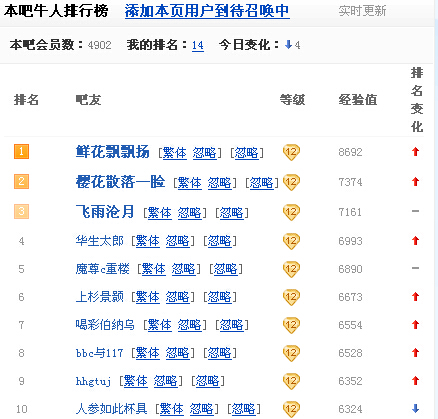 福尔波诺这个大水比又玩这套,取消关注,然后隔天在关注,度娘如果把取消关注后的人所在的吧的经验清空的话,波诺水神就呵呵了