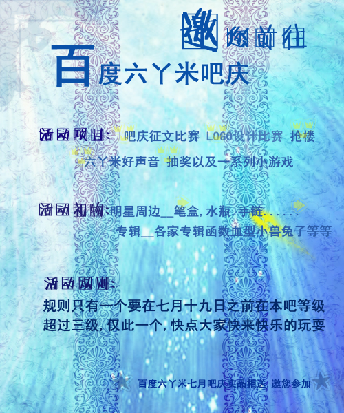*═════════百度六丫米吧七月吧庆邀您同庆═════════*