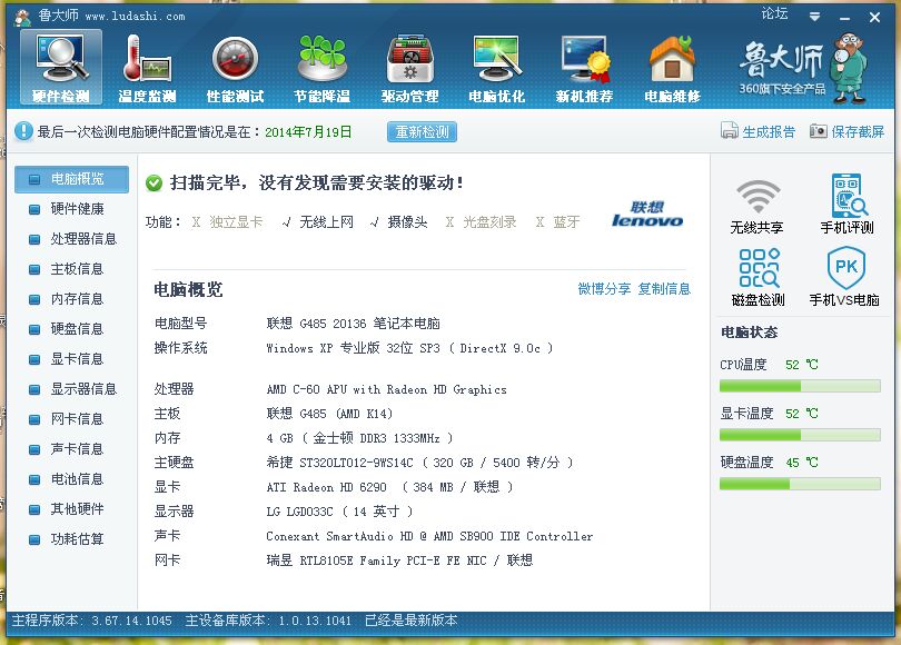 我这个电脑是2013年九月买的,但是被JS所骗,买到了一款联想G450手提电脑,CPU居然是AMD C-60,1.0GHz,其他的配置在图里!