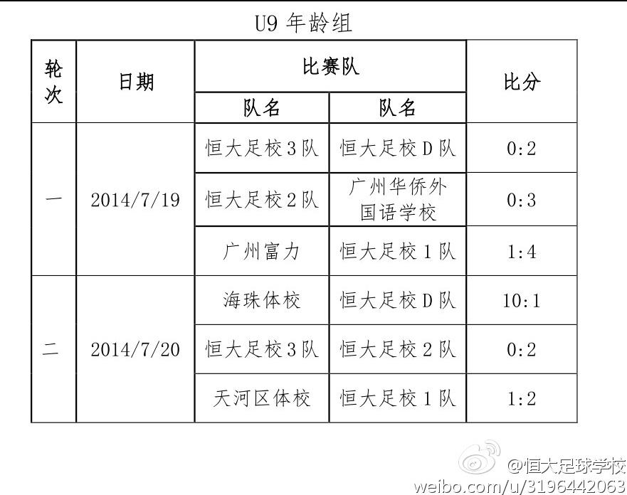 2014年“恒大杯”广州市青少年足球锦标赛于7月19日在人大附中皇马足球学校正式打响。截至目前为止,已经进行了30场比赛。我校共派出16支球队参加本次比赛,经过两天的较量,我校球队凭借球员们精湛的脚下技术和鲜明的西班牙战术风格,在各年龄组都取得了不错的成绩。我校各年龄组前两轮比赛结果如下: