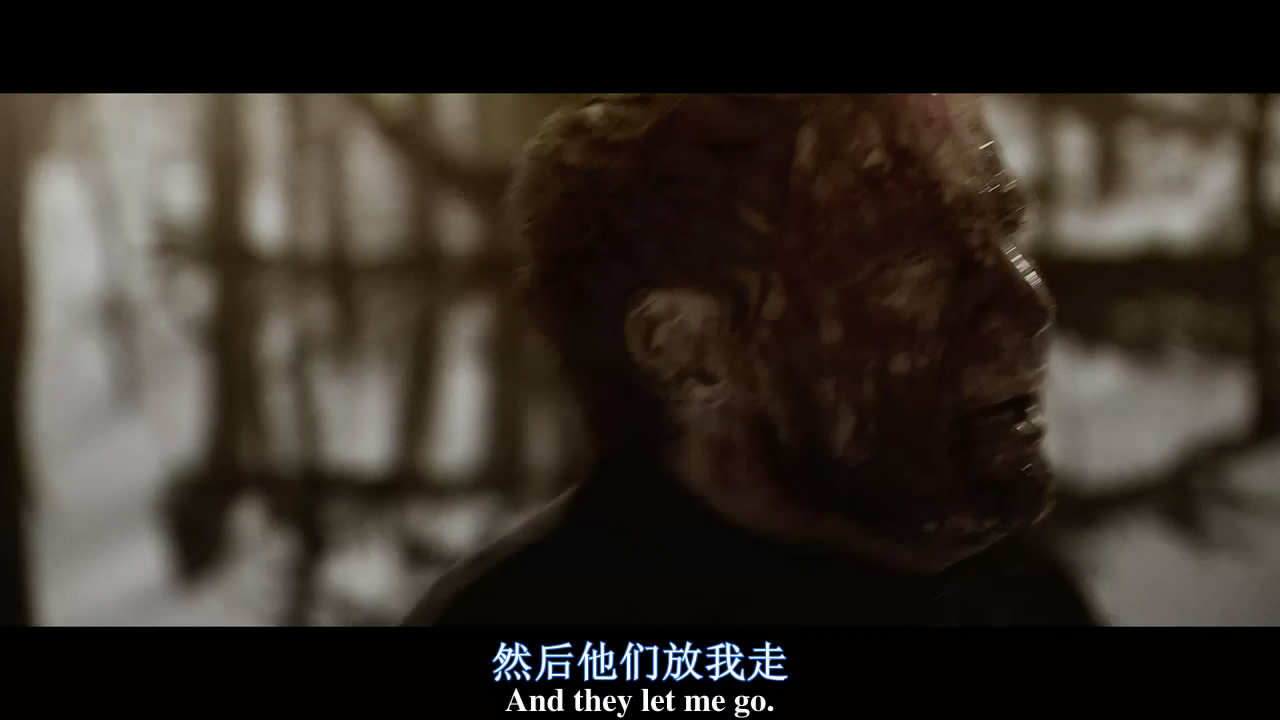 影片开头,嗯,很传统的开篇,幸存的男主,大家看右上角,风骚的跑位,难怪能活着