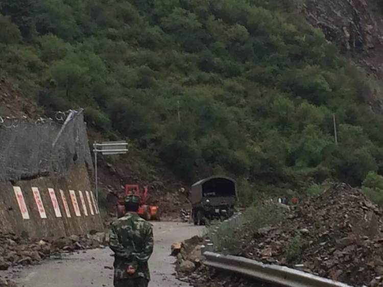 刚到昌都芒康县就遇泥石流。