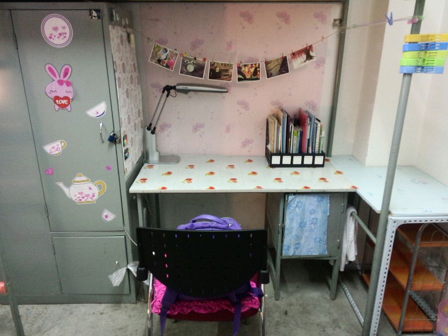 柜子还好,不过是不大,衣服有些可以打包箱子放在阳台,或者自己买简易衣柜在寝室,咱们国商查寝少所以布置可以相对随意些